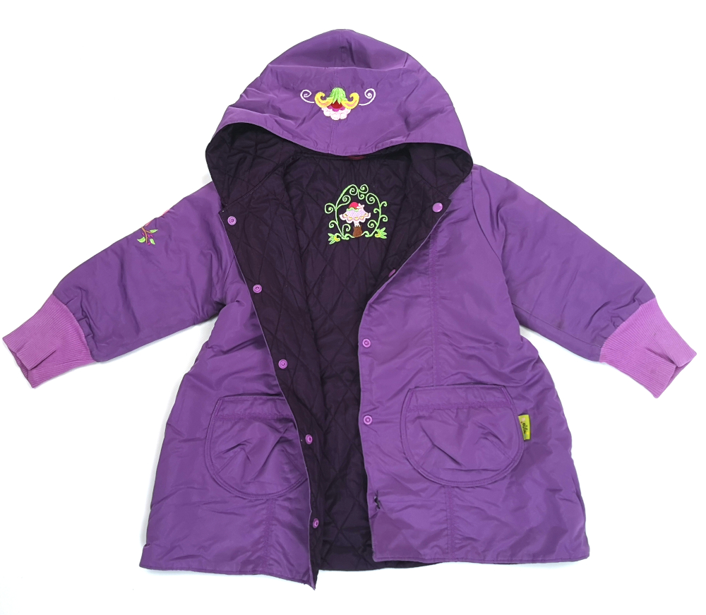 Gr. 98 Übergangsmäntelchen, Jackenstoff + Stepper, bestickt, Stoff ausgerissen am untersten Knopf, sieht man geschlossen getragen aber nicht, 5 €