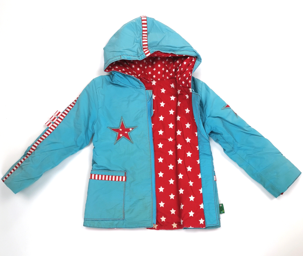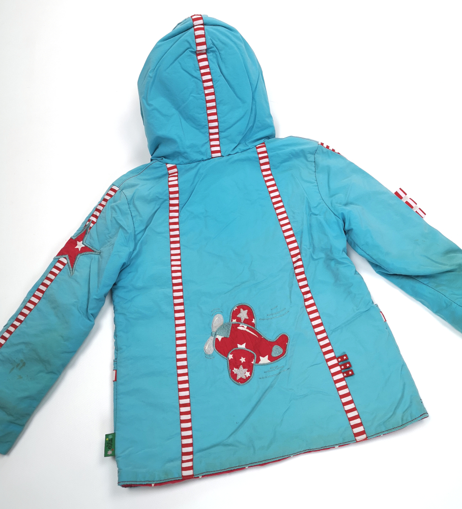 CECILY Gr. 110/116 Lieblingsjacke, Taslan + Klimamembran + Thinsulate + Popeline, bestickt, viele Flecken, Naht unter der Achsel löst sich, geschenkt dazu