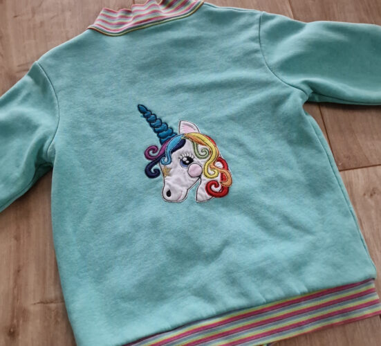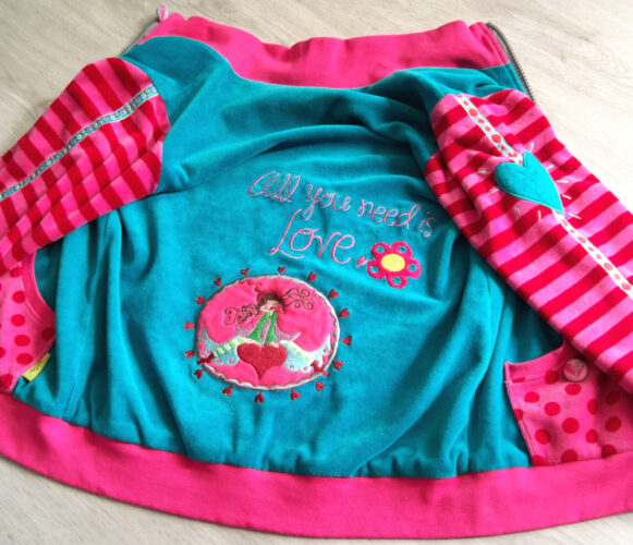Gr. 122/128 aufwendig bestickte und verzierte Jacke, außen Nicky, innen Jersey, ungetragen, 18 €